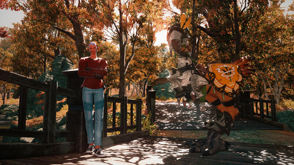 Sexuality: GayBiographyJero is Ishgardian by birth, but was raised in Gridania. His conception was a "happy accident" as his parents put it. They never looked to have a child, were ill prepared to raise one, and at times seemed genuinely disinterested in the task, but made a point of keeping Jero clothed, fed, healthy, and happy.His dad ran an import shop that mostly specialized in importing La Noscean wines. His mom was an artist that specialized in landscape and portrait paintings. As Ishgard become increasingly isolationist, fundamentalist, and colder, it became equally difficult to run an import wine shop and Jero's parents decided to leave for the sunnier and more open city of Ul'dah. That decision was short lived due to his parents being sorely unaware of just how hot and dry the city was, not to mention the cost of dealing with the Syndicate in running a business. After about a year, they packed their bags and headed to Gridania.The forested city of the Shroud is where Jero would spend his childhood and young adult days. His dad established another wine shop and even began travelling to Othard for work and brought back libations of eastern origin. His mom would continue her art and filled both home and business with her work and picked up commissions for local residents.Jero was mostly responsible for raising himself. He spent his days wondering around the forests of the Shroud and became interested in botany, carpentry, astronomy, and other aspects of the natural world. Eventually he'd join Gridania's Gods' Quiver as an archer but would flunk out due to being too undisciplined and aloof.This would prove fortuitous though as it would lead to Jero coming across the Thavnarian Troupe Falsiam and its dedicated leader, Nashmeira. They were putting on a show in Bentbranch Meadows and Jero found himself enchanted by their graceful movements and nomadic lifestyle. Sensing his fascination, Nashmeira asked him to join the Troupe and offered to teach him the ways of Troupe Falsiam.Currently Jero lives in the Lavender Beds where he runs his own bar and bathhouse. He has a highlander boyfriend, Inna, who's absent more often than not. Much like his parents though, Jero figured how to make that sort of relationship work, and is happy with the mercurial nature with which Inna shows up in his life.